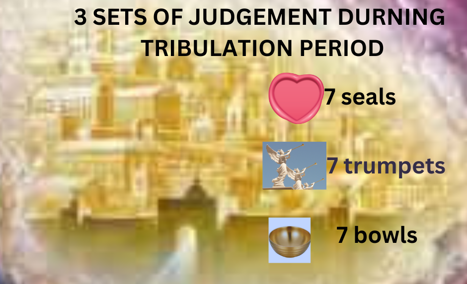 Today’s topic is about the 3 sets of judgement that Revelation speaks about. All this can be found from chapter 6-18 of the Book of Revelation. The 3 sets are the Seal, the Trumpets, and the Bowls. Each one contains 7 distinct plagues God will be casting down upon the earth. The next 21 days we will be looking into all 21 and the meaning of them all. With tomorrow will begin the first seal which was to be open. The meaning and understanding of all that will be done during the time of the tribulation and why.