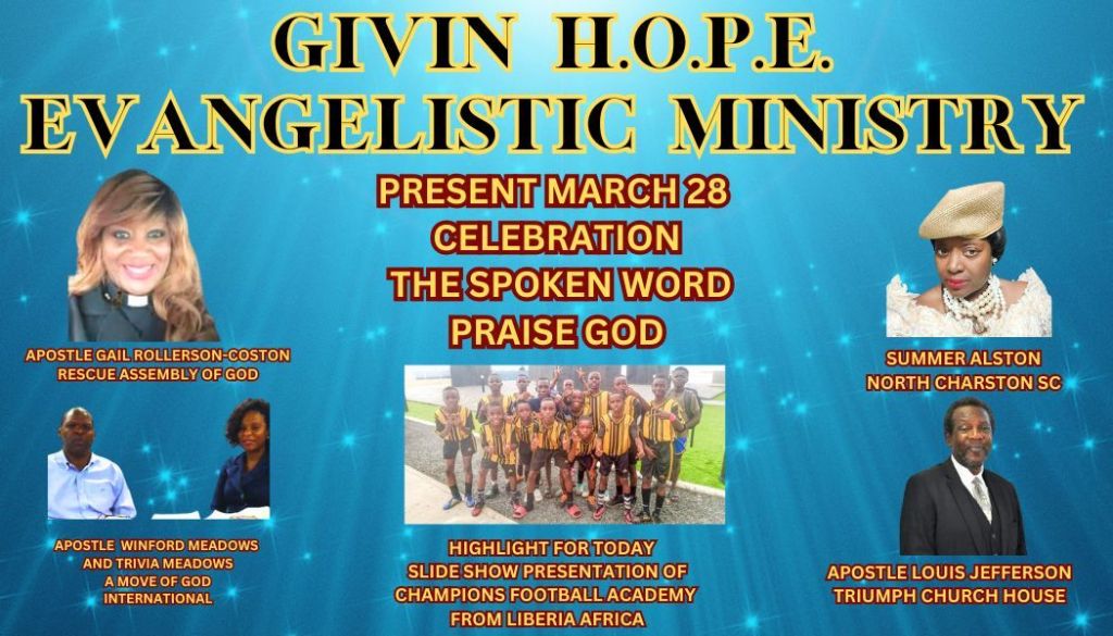 We like to invite you to a taping of the celebration of Givinhope Evangelistic Ministry. It’s a flashback of the past. Looking at where they are now. What does the future hold for the ministry.