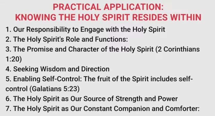 Know the role the Holy Spirit plays in the life of the believers. He works in the believer’s life in many ways. Such as a guide, comforter, enlightening us, empowering us. Many more things the Holy Spirit does within the believer’s life but one thing I do know he guides us through stressful situations.
