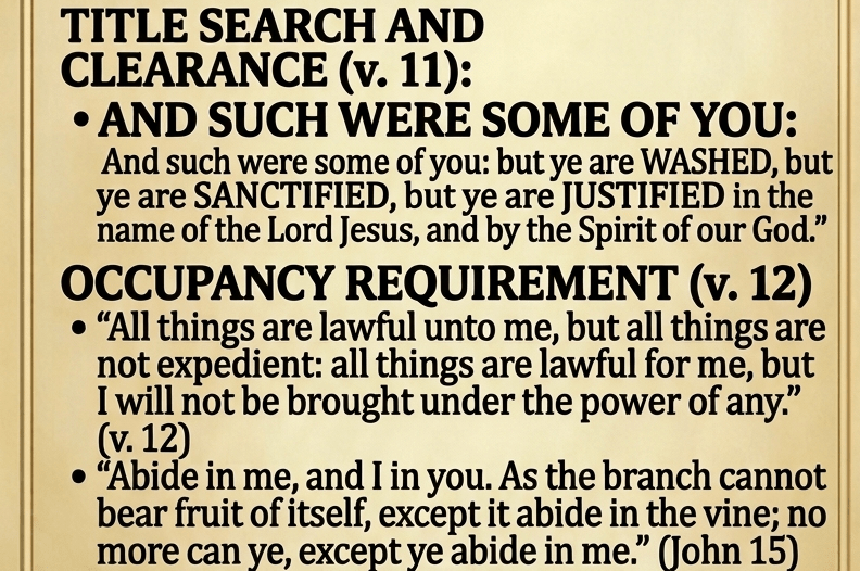 This week we are moving into the subjects deeds, wills, and property rights. John 14, John 15, Acts 26:18 and 1 Corinthians 6:9-12