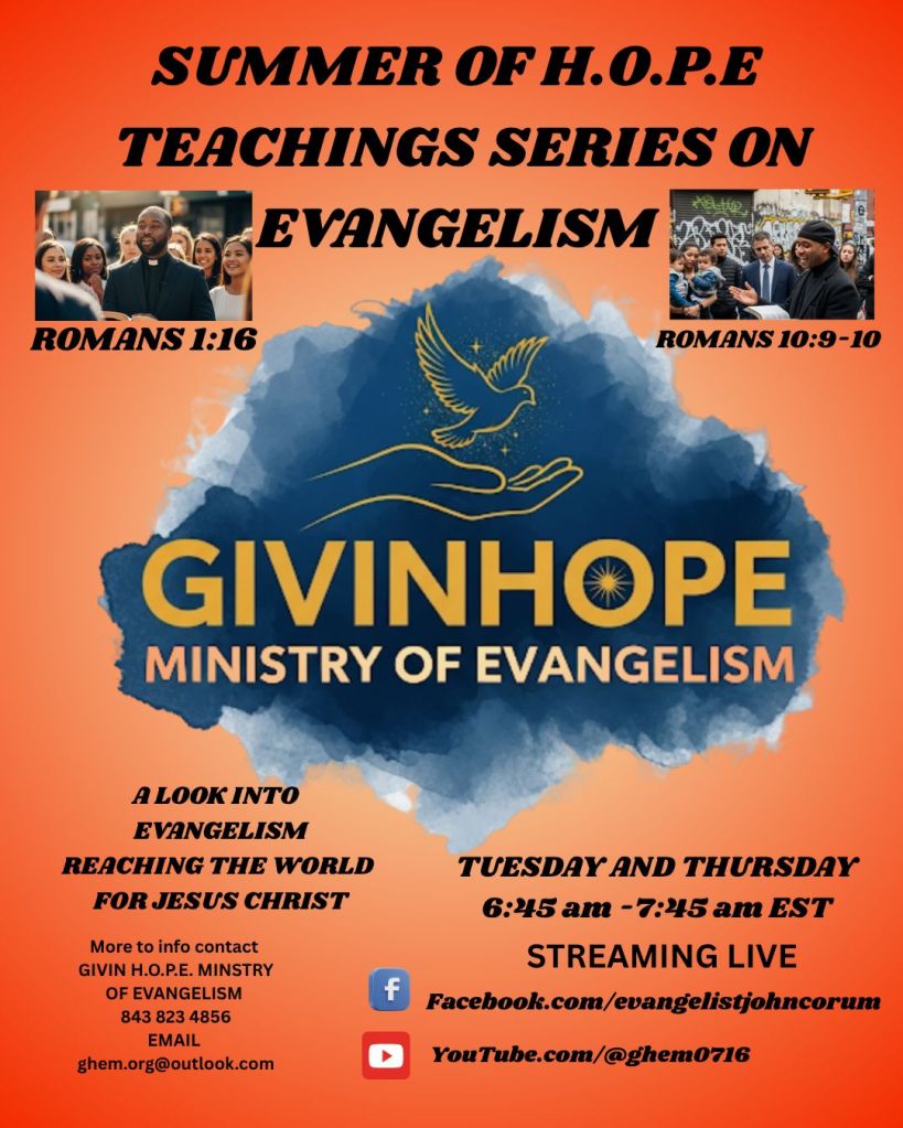 SUMMER OF HOPE TEACHING ON EVANGELISM. This will be a big event so take note and learn about Evangelism as presented by Givin H.O.P.E. Ministry of Evangelism